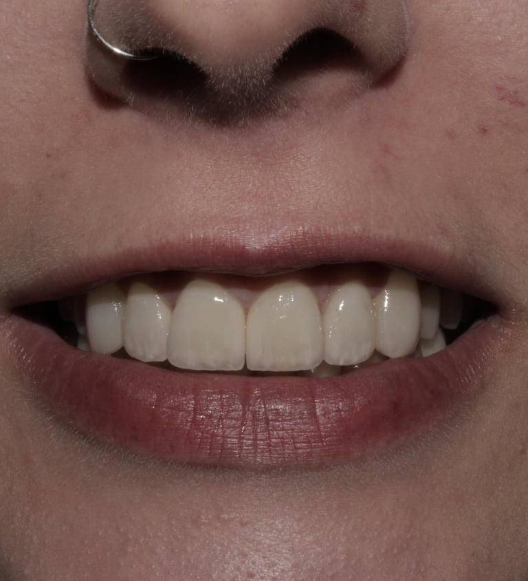 Questo caso evidenzia l'importanza di un approccio multidisciplinare nell'odontoiatria estetica. La combinazione di ortodonzia e protesi estetica ha permesso di ottenere un risultato armonioso e funzionale. Le faccette in porcellana feldspatica, grazie alle loro proprietà ottiche, hanno conferito ai denti un aspetto naturale, soddisfacendo le aspettative estetiche della paziente.
