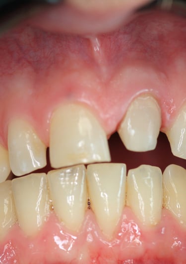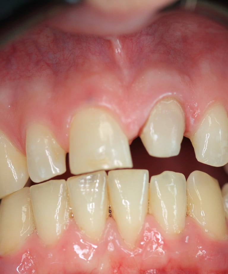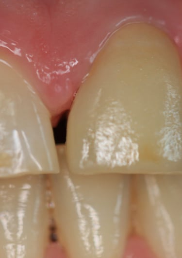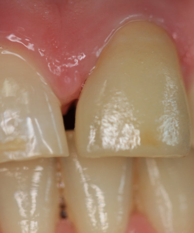 Un paziente si è presentato alla nostra attenzione con un problema di decementazione ripetuta della corona su un incisivo centrale superiore (dente 21). Oltre all'evidente instabilità protesica, la corona mostrava una discrepanza estetica marcata rispetto ai denti naturali adiacenti, compromettendo l'armonia del sorriso.