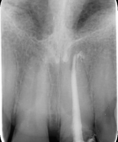 Il perno moncone preesistente è stato rimosso e sostituito con un perno in fibra di vetro. Questo materiale offre vantaggi significativi: